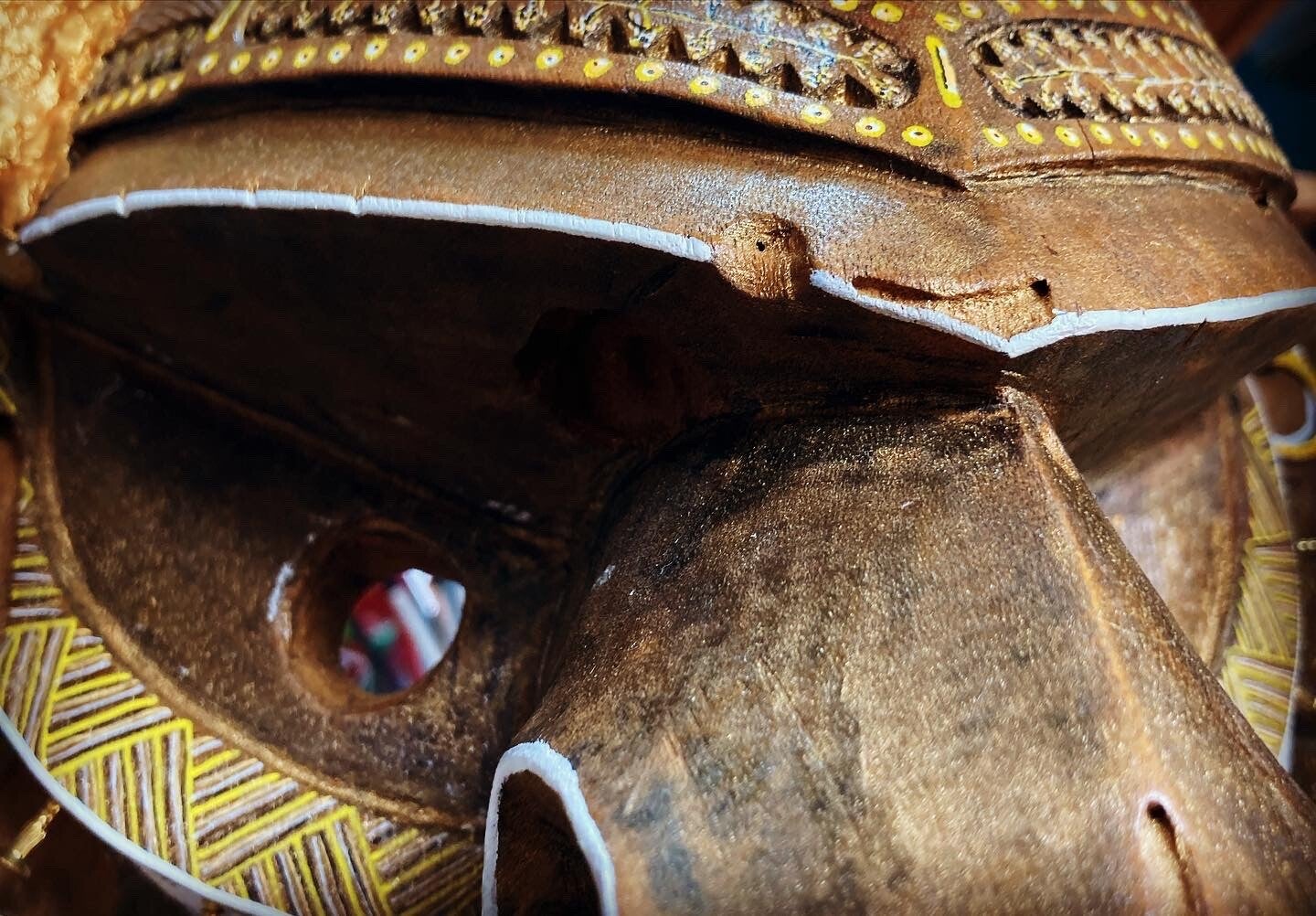 Cette pièce, issue du bord du fleuve Sépik, est un masque restauré et sublimé, fidèle à ma démarche de redonner vie à l’art premier.
