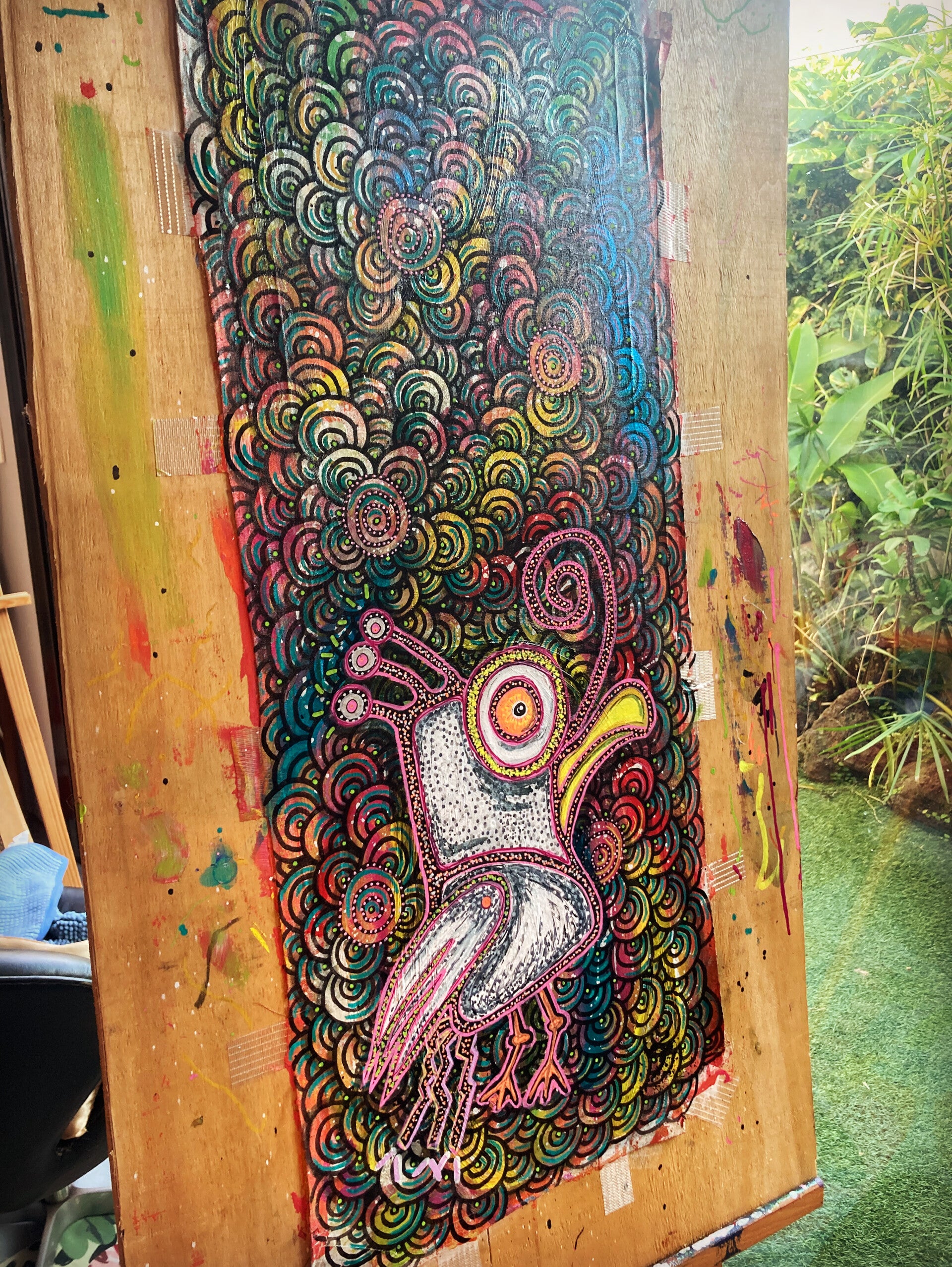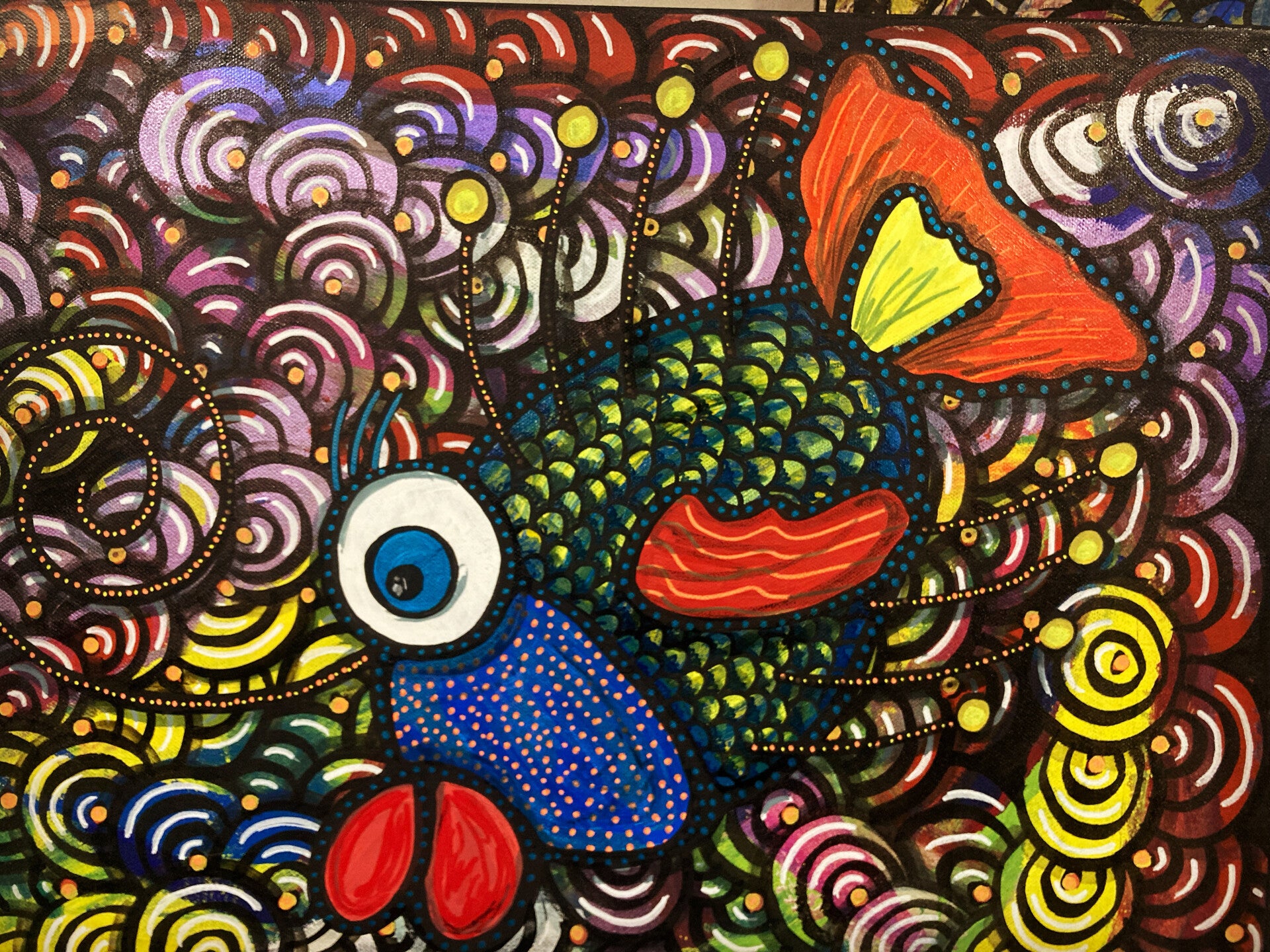 Une grande première pour moi : exposer des toiles avec un univers coloré qui nous rappelle notre enfance.